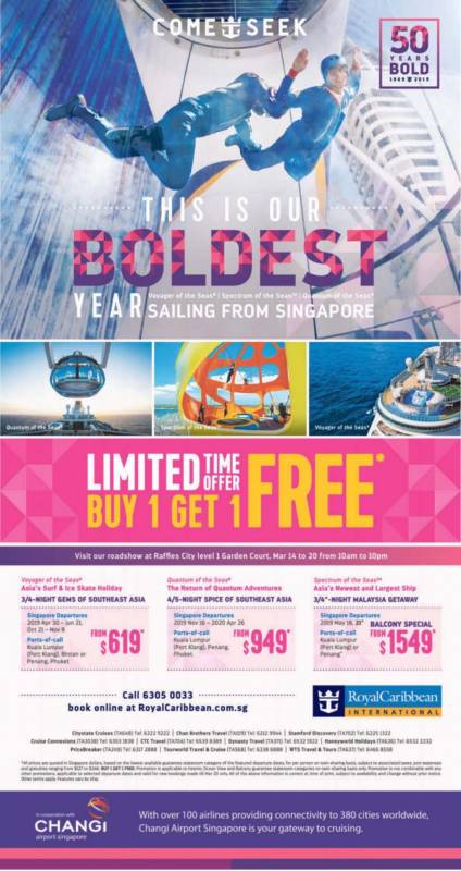 1.Royal Caribbean International 豪华游轮买一送一大放送,走起!【活动至3月20日】