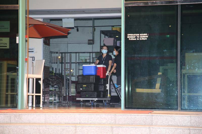 警方封锁现场10小时,警员事后用手推车带走多件证物。