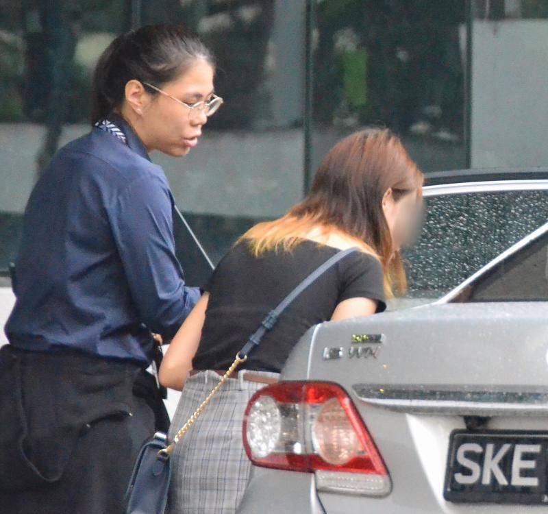 一名金发女郎在女警陪同下离开。