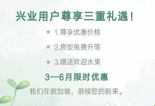 不仅为兴业用户免费升等一个等级房型;
