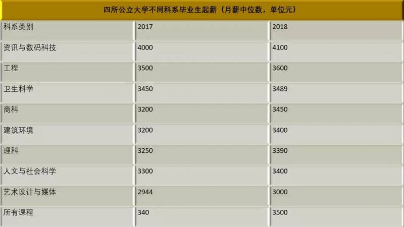 在就业薪资方面,全职就业的毕业生去年起薪中位数达3500元,比前年增加100元。
