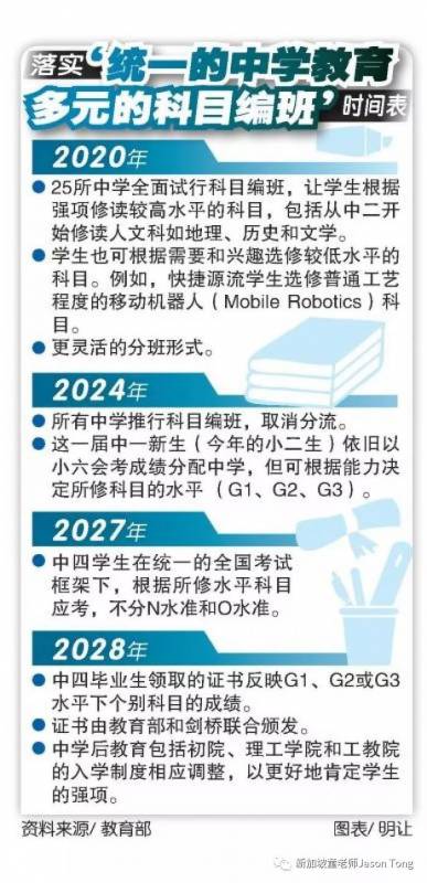 自2024年起,学生们将不再以“快捷源流”(Express)、“普通学术源流”(Normal Academic)和普通工艺源流(Normal Technical)来分班。原有的“聪明学生”和“不那么聪明的学生”的身份标签也将从此划上时代的句号。
