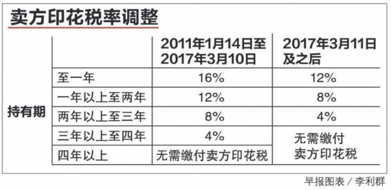 在新加坡,如果在一定期限里卖掉公寓,卖家需要上缴印花税。在2011年1月14日过后买房的购屋者,只要在四年内卖房屋都需要支付卖方印花税,第一、二、三和四年卖掉房产的税率分别是16%、12%、8%和4%。此后就不必上缴卖家印花税。