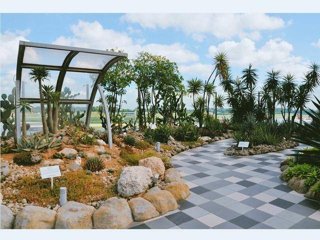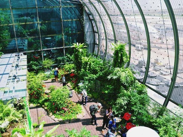 这是樟宜机场五大主题公园之一,里面还设有一个庭院酒吧,旅客可以来一杯消暑的清凉饮品,还可以自在地舒展筋骨,缓解旅程中的疲惫。