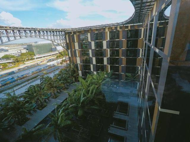 离机场最近最高的酒店,由玻璃与钢材构成的恢弘建筑外观,是屹立在3号航站楼附近耀眼的建筑。地理位置具有绝对优势,只需5分钟的步行时间即可抵达航站楼。整栋以艺术的装饰风,充满着丰富的创意灵感。最受瞩目的当属空中露天泳池,将壮丽的机场和城市街景一览无余。当夜幕降临,那昏黄的余晖,倒影在泳池上 ,频添几分热带风情的浪漫。