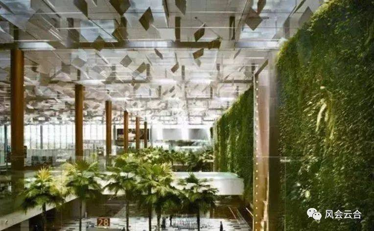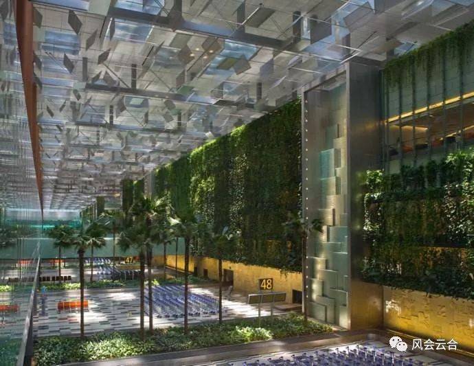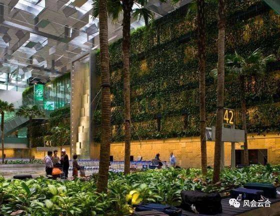 大型垂直种植系统将东南亚赤道雨林引入新加坡樟宜3号候机楼内部,构建了一座似巨穴的工业建筑。由种植植物组成的挂毯不仅将建筑物划分为几个不同的陆、空部分,而且还连接垂直空间的登记区,这是一个独立玻璃安全屏。