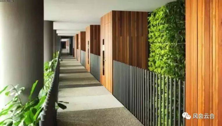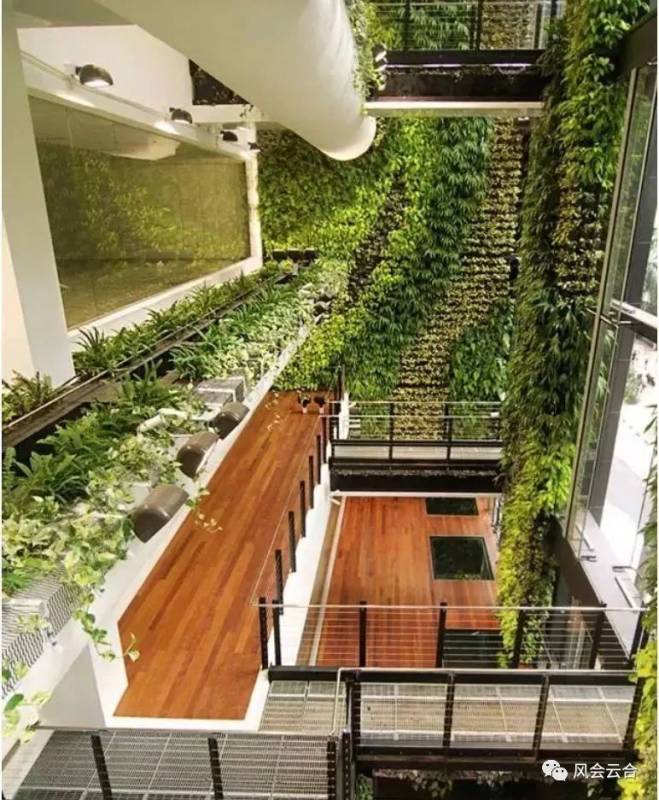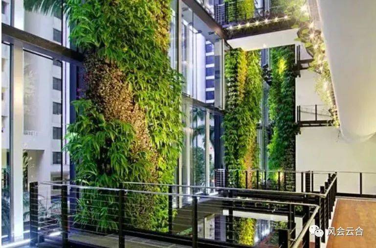植物绿墙在建筑内不只是作为装饰之用,同时也相当醒目地体现出建筑内的优良环境,说明了大型的建筑内的环境也能拥有人性化的设计。