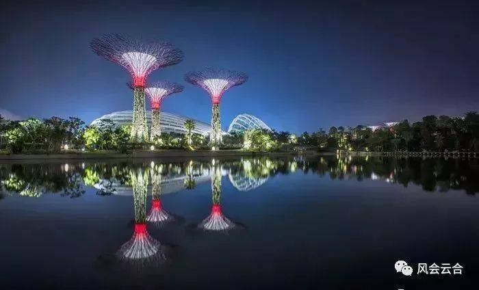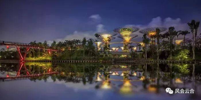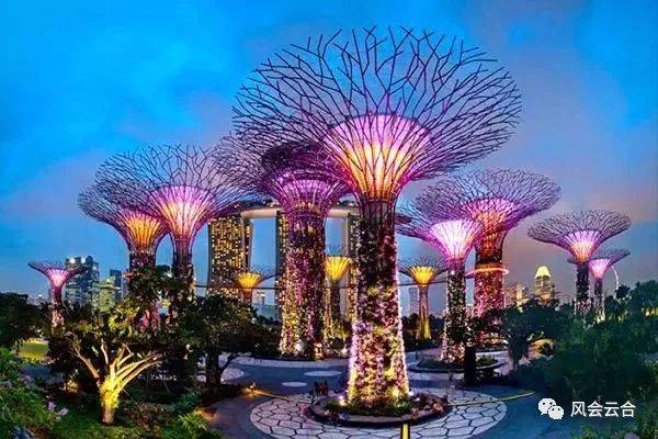每当夜幕降临,人造太阳能树上的灯都打开的话,会出现阿凡达世界一般的超现实感受。