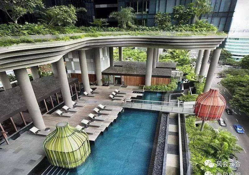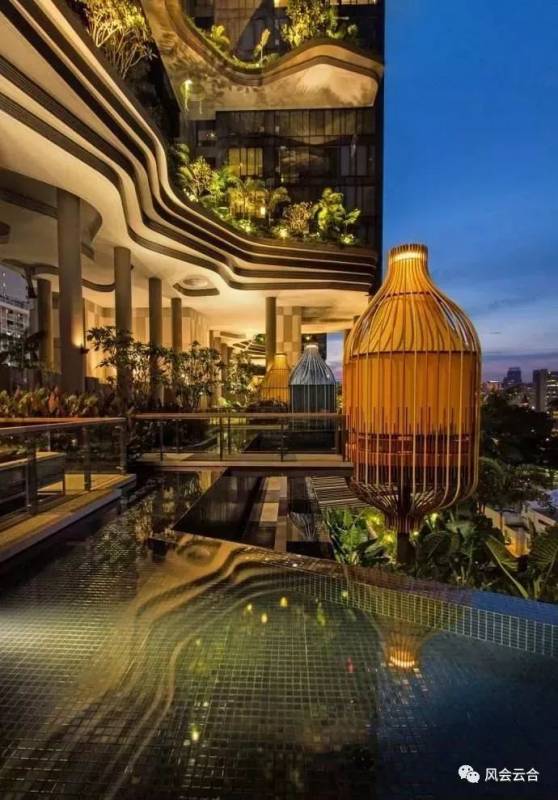 新加坡的标志性酒店,由来自WOHA国际一流的设计师操刀,采用花园酒店理念,拥有面积约15,000平米的繁茂园林、瀑布和花墙。酒店是通过太阳能电池供电的新加坡首批零耗能空中花园,还采用了综合性节能节水措施。