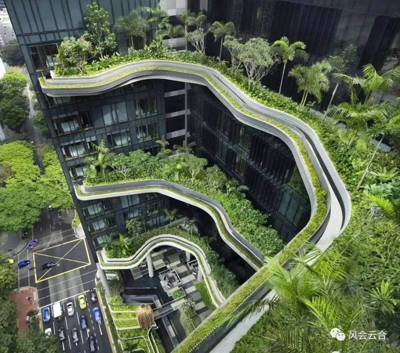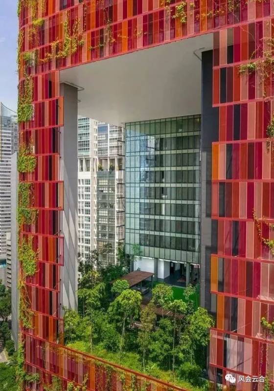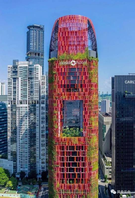 WOHA所设计的Oasia酒店耸立在新加坡高楼云集的中央商务区之中,而无论室内亦或室外空间,景观的用途被进一步扩展,成为了立面建筑材料中不可或缺的一部分。