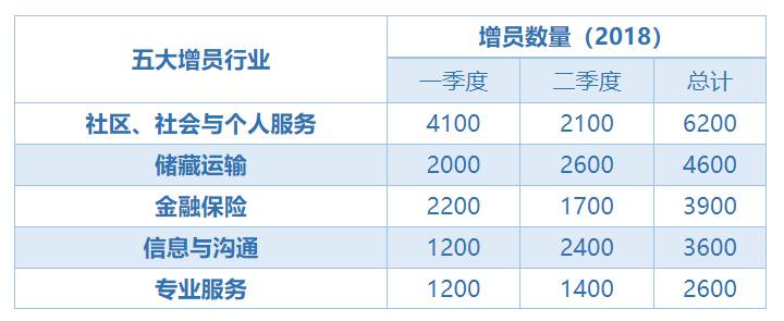 增员最多的行业如下