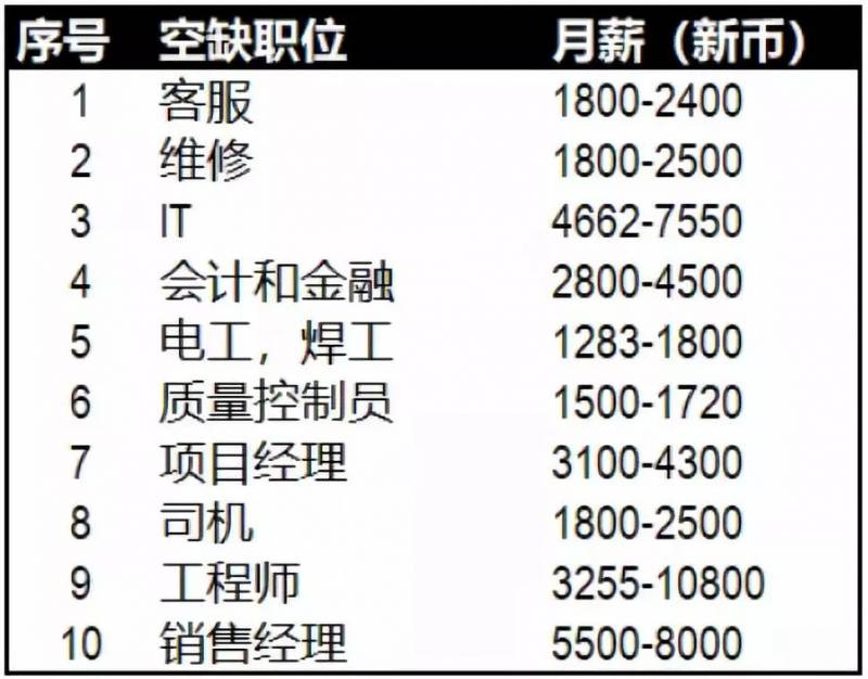 新加坡职位空缺情况严重