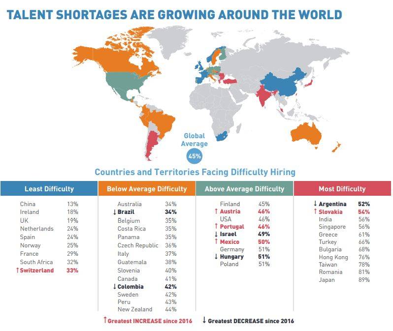 全球最缺人才的国家和地区