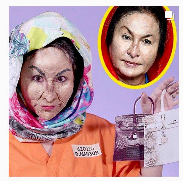 姐妹儿还挺能搞怪,人家化妆都往美了画,她完全不顾形象,用化妆品把自己cos成了马来西亚前首相夫人的样子,笑死个人,那条视频浏览量也奇高,达到了95万。