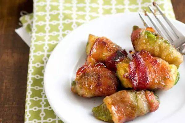 4. 将培根卷放进红糖中慢火煎,最后撒上适量辣椒粉