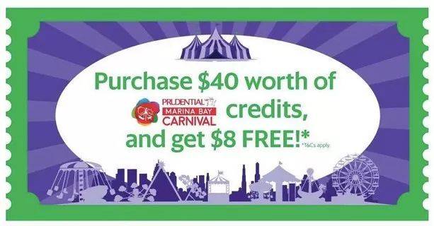 使用GrabPay购买$40的滨海嘉年华credits,即可获得价值$8的免费credits!