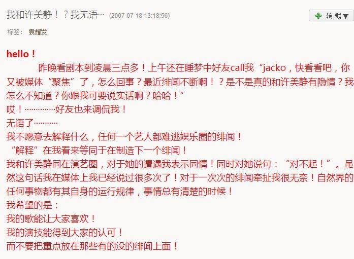 但从袁耀发2007年的表述看来,他完全否认了自己与许美静的一切关系,网上也没有任何二人的合影。