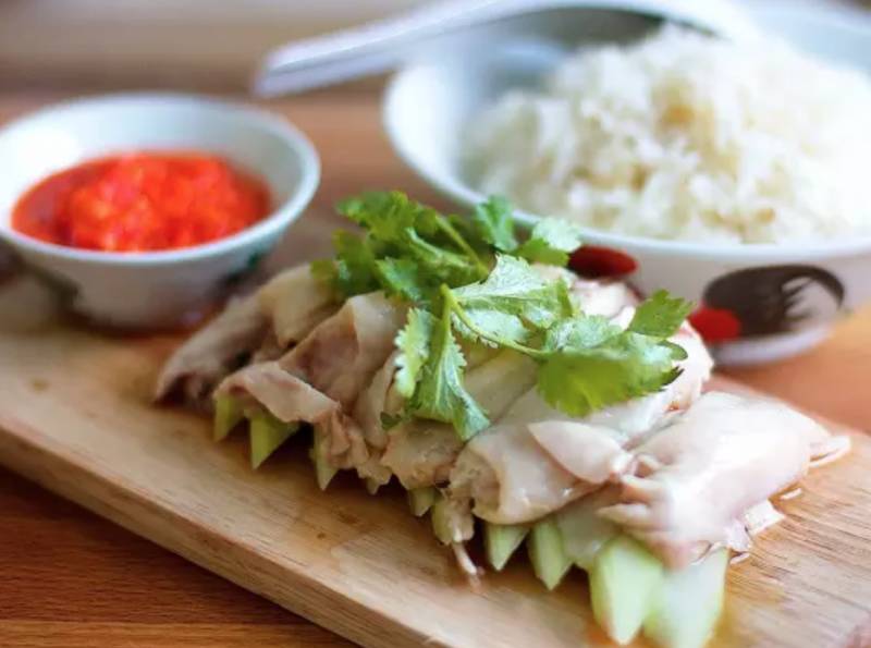 刚煮好的整鸡放入冰水中保持了鸡肉嫩滑的口感,配上特制鸡饭辣椒酱,每一步都必须一丝不苟,才能一入口成就完美搭配。海南鸡饭现已成为新加坡“国菜”。