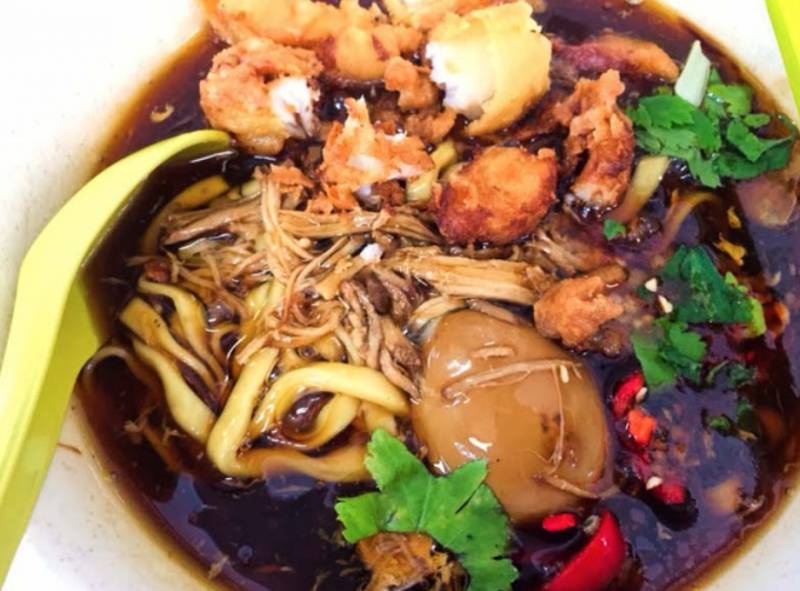 卤面源自中国厦门,1950年代被引入新加坡。卤面看起来并不诱人,但“面”不可貌相:浓稠的酱汁是用猪骨、鸡蛋和香料熬制而成,配上卤肉、鱼饼、卤蛋和五香卷,非常可口。