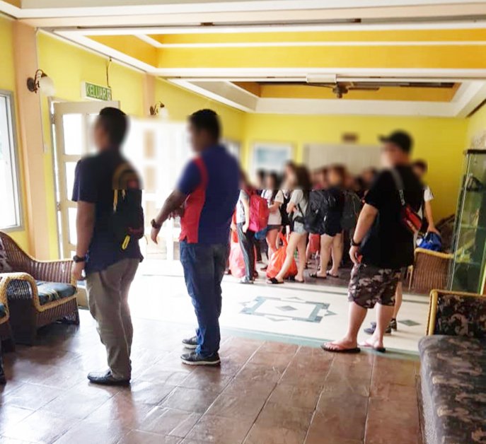 据了解,该批男女是来自一家美容公司,它在国内拥有多家分行,主要分布在吉隆坡和柔佛地区。该公司也在于本月14日,在面子书官方专页贴出“公司培训休假通告”,宣布所有公司分行都将从本月18日至20日,连休3天进行公司培训活动。