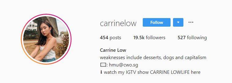 Carrine Low在她的INS频道上