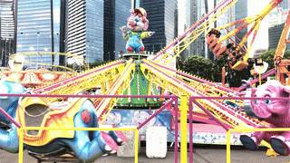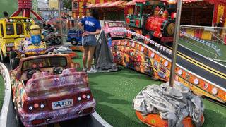 二、里面中心地带的基本都是一些安全系数比较高的机动游戏,建议以“S型”顺序打卡,这样不容易漏掉。机动游戏包括回旋木马、旋转咖啡杯、疯狂的汽车、小火车还有充气城堡。这些游戏要求是在90cm或以上,所以长得高的孩子比较占优势,不够高的孩子可以在家长的陪同下体验。