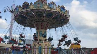 海盗船分左右两边,仅经过2-3次的匀速摇晃后开始提速摇摆。我感觉它运行时最陡的时候达到90度,Emerson全程闭眼,吓到屁股泪流(一点不夸张)。而我只听到自己的尖叫声,那种上下摇晃的感觉差点让我把午餐给吐出来了。