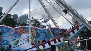 当座位缓缓上升时,会开始有惧高情绪,随着越来越高,旋转的力度就越大。这个游戏可以悬在半空欣赏整个滨海湾的景色,享受着自然风。不过玩这个游戏的时候,穿拖鞋的朋友记得要脱鞋哦。,要不估计你会找不到。
