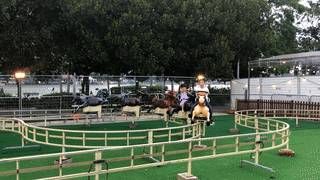 这个游戏是模仿真的马在草地上奔驰,所以轨道的设计是S型,而且还有高低起伏,孩子们会一边骑,一边念“伽”,想像著自己在驯服小马。