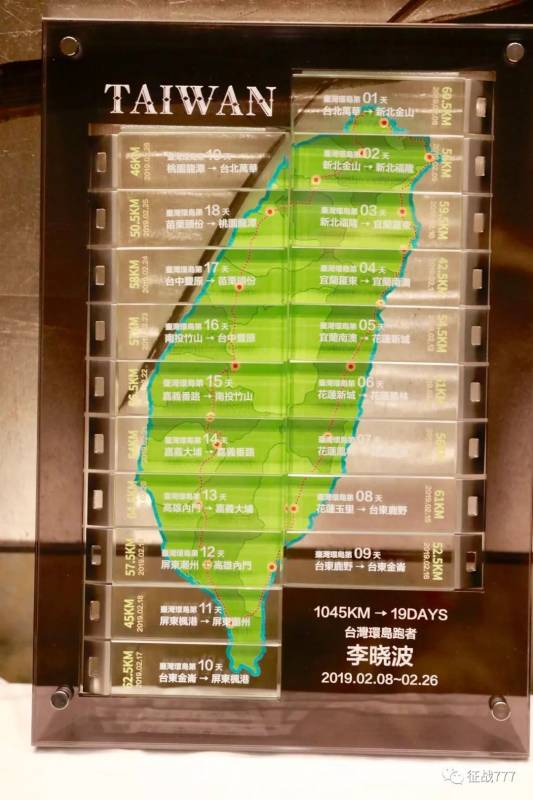 大赛第一天,也就是2019年2月8日大年初四清晨六点,选手们从台北西门町出发跑至新北金山(59.5KM)。接下来的十九天里每天六点,跑者准时开跑,经过宜兰、花莲、台东、屏东、嘉义、南投、台中、苗栗、桃园,最终回到台北西门町。他们用常人难以想像的顽强的意志力征服全岛,用脚步在地图上画出一个完美的圆圈。