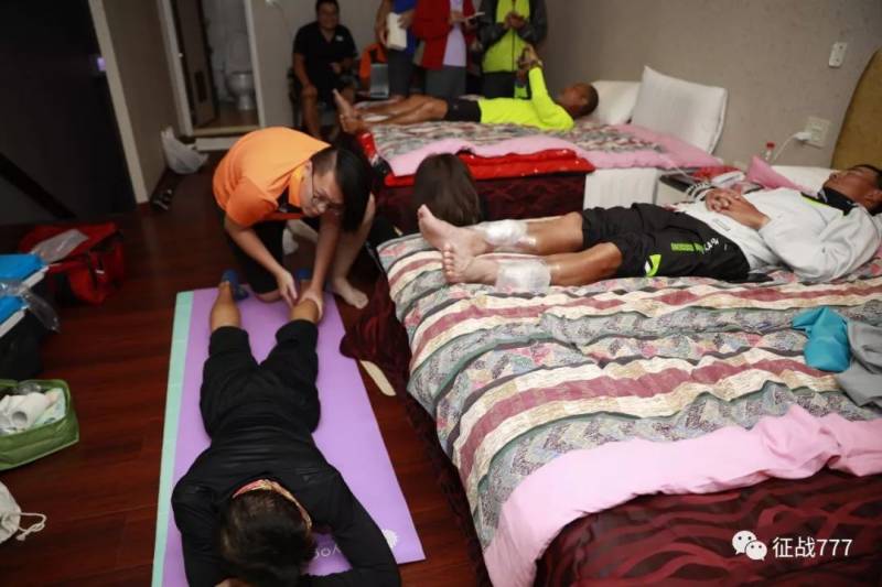 从事体育和运动医学专业特地加入志工团队的三名防护员成为天使一般的存在,除了比赛开始以及结束以后为大家进行疗伤,途中也负责处理各种状况。每天晚上跑者们休息以后,防护员休息室成为最受欢迎的房间,他们忙着给白天累积伤痛的跑者进行紧急救治。