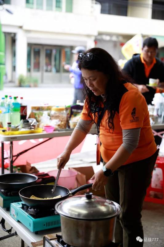 马拉松的补给点是这次超马赛事非常特别和温情的存在,组委会志愿者(志工)团队很多都是跑者的家属,十九天全天无休为大家准备食物和补给,其中葛诚的太太途中生病也一直坚持为大家服务。他们每天起的比跑者早,睡的比跑者晚,想方设法为已经精疲力尽甚至毫无胃口的跑者熬煮美味的食物,烈日下送上冰凉的绿豆汤,冷雨中送上温暖的姜汤,可以说没有志工的付出,就没有大家的圆梦。