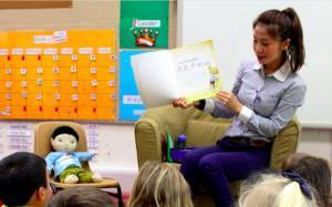14:00pm 早教专家在教孩子们看图讲故事,这对小朋友们的阅读和写作能力有很大帮助。