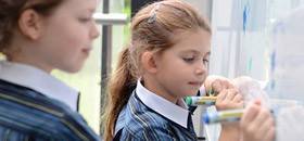 15:45pm Kylie很有艺术天分,因此入选了AIS的艺术俱乐部。在放学后的俱乐部活动上,她在学着把照片中的黄色花朵搬到自己的画纸上。