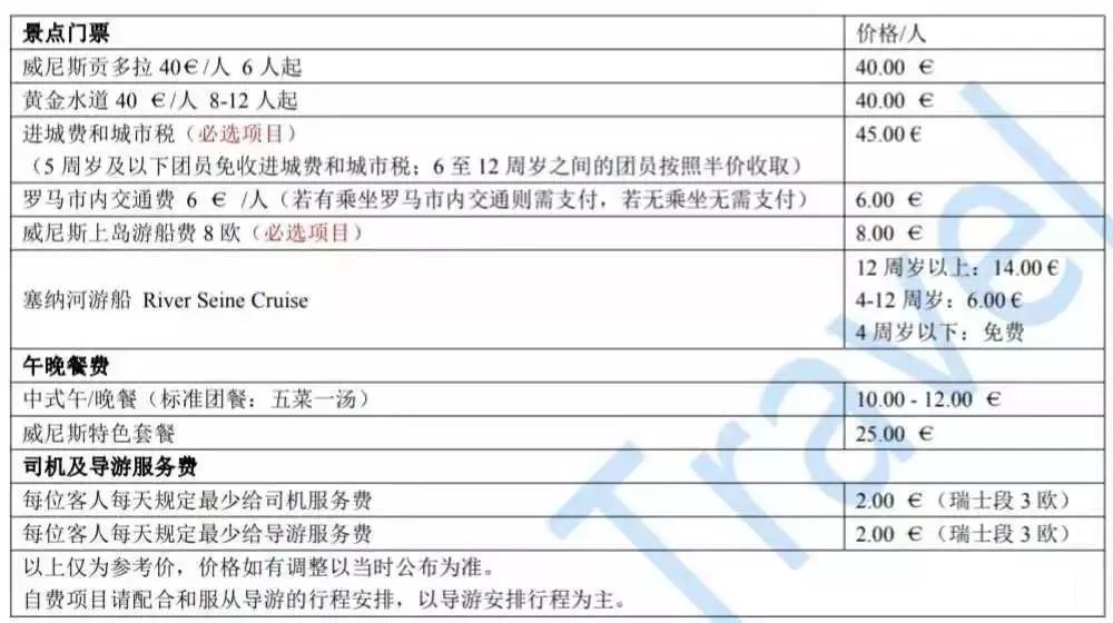 4.司机、导游小费:每人每天 4 欧元/天(司导各 2 欧)