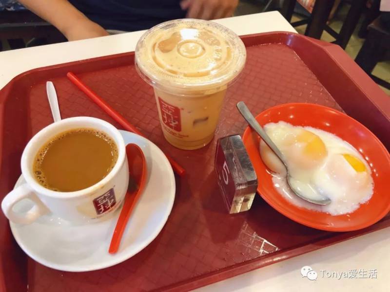 奶茶里加入了咖啡和炼乳,一冰一热,各有风味。溏心蛋本应是伴入酱油和胡椒粉一起享用的,某人饿极了便猴急地囫囵吞下,并没有吃出个所以然来……