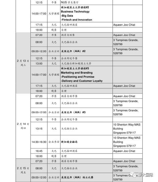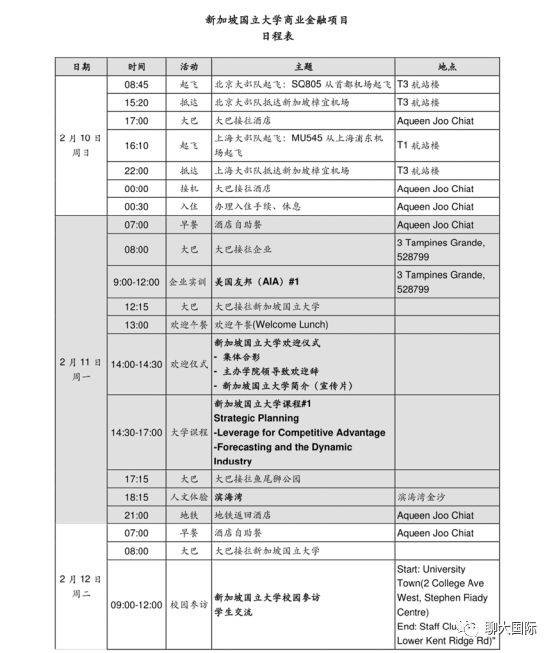 2019年2月10至19日,聊城大学13名本科生圆满结束了赴新加坡国立大学为期十天的访学项目。该项目主题为“商业与金融”,内容涵盖了亚洲排名第一的新加坡国立大学(NUS)课程学习和美国友邦保险有限公司(AIA)的项目实习,课程安排时间紧凑,内容充实。来自全国各地大学的45个学生,聊城大学指导老师匡萍、张延辉,罗客教育科技有限公司赵洪保等人,一起度过了非常有意义的十天。下面用以下四个部分来简述我的体会。