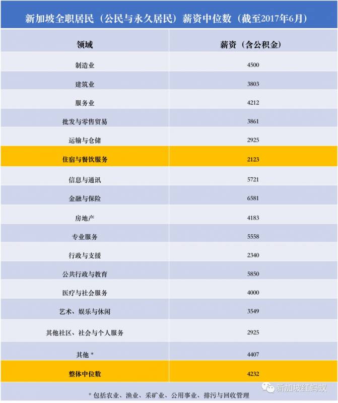 以下是人力部发布的《2018年新加坡劳动力报告》中,各领域的本地员工(公民与永久居民)每月薪资的中位数。