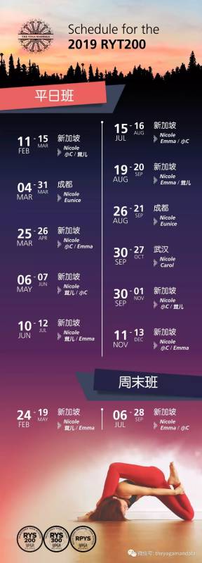 The Yoga Mandala教培课程为小班授课(15人/班),导师在25天的培训中,有时间和精力去关注每一名学员,并根据学员的目标及特长给予指导,为新加坡及亚洲各地的大型瑜伽馆及健身房输送大量优秀毕业生,并会在每一期的毕业生中择优留校任教。在The Yoga Mandala学成归国的同学们也都因为专业程度高,教学风格明显而成为深受欢迎的瑜伽导师。