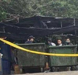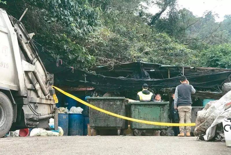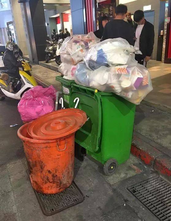 当时垃圾桶就放在烧肉店门口,等待回收车的回收