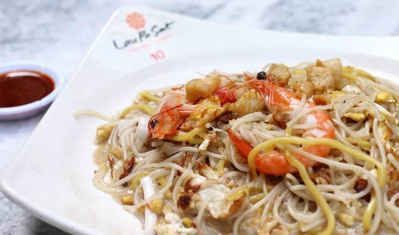 炒福建面的虾味十足带有一点点汤汁