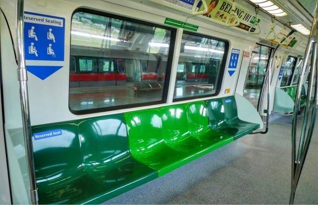 新加坡地铁上的座位有两种颜色,墨绿色的是给“有需要乘客”预备的,浅绿色的是给普通人预备的。Mr.Good说在浅绿色座位上你可以不让座,但是如果你坐的是墨绿色的座位,就需要随时给有需要人士让了,不然会遭人谴责。