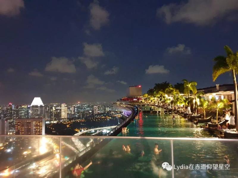 下图是天还没那么黑的时候拍的,你可以看到无边泳池的边外面还有一截,足够你走在上面(当然,只有维护人员才会去那走吧),游客就不要尝试了。