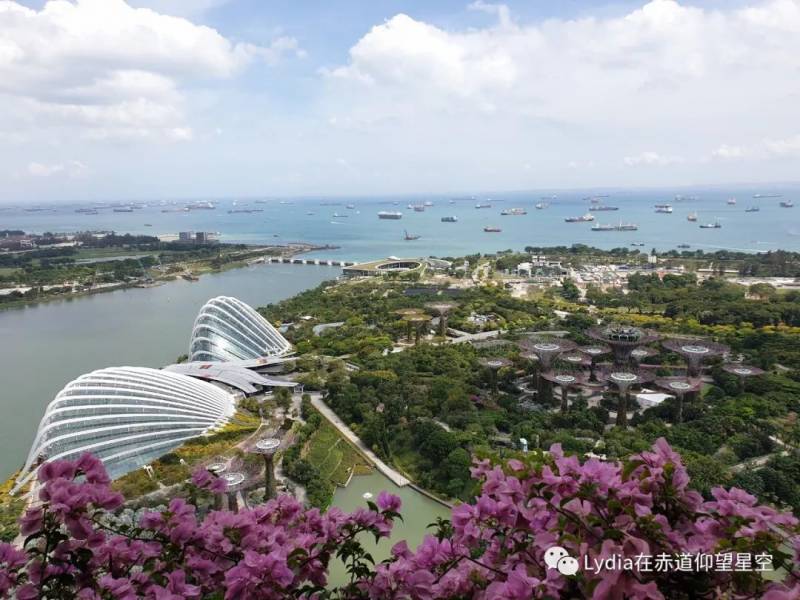 推开小阳台的门,可以站出来,看滨海湾的美景。正对着就是滨海湾花园Gardens by The Bay的两个花穹和巨树林。 这个景致对得起我多加的$47了