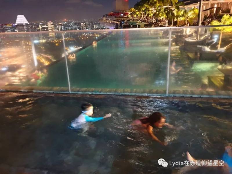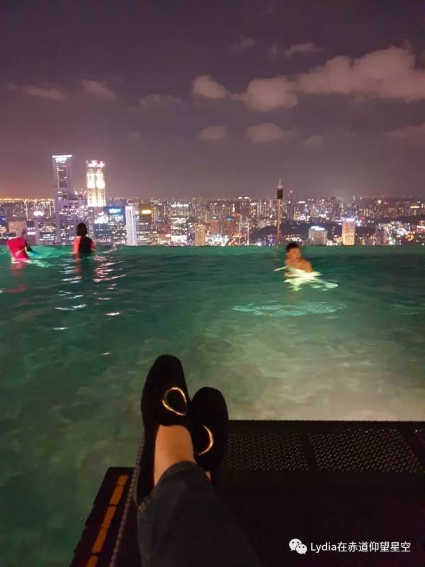 晚上来游泳,趴在无边泳池里看这无敌夜景,绝对是难得的体验,除了——水真的有点凉
