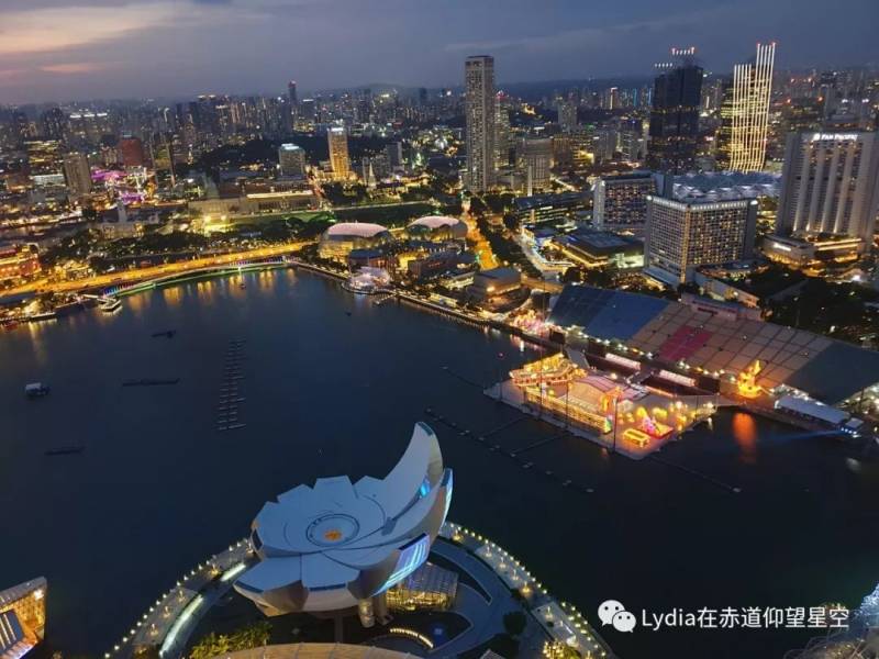 绕到市区这一侧,滨海湾区尽收眼底。滨海湾浮动舞台、榴梿壳大剧院、艺术科学博物馆。