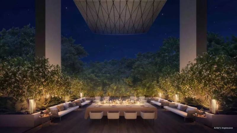 空中花园位于顶楼29层,北侧设有50米无边泳池、躺椅区和带顶篷的休闲双人床,南侧设有水疗区和休闲浴池。中间的甲板部分配备两个烤台以及两个用餐室,风景和美食两不误!