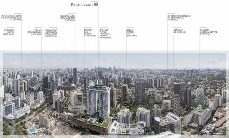 三、就是乌节路林荫道(Orchard Boulevard)——铂瑞雅居的所在地,紧临瑞吉酒店和四季酒店。临近的乌节路地铁站,汤申-东海岸线也将从2019年起陆续建成。