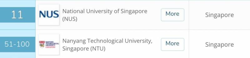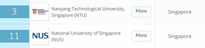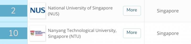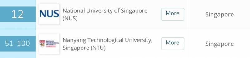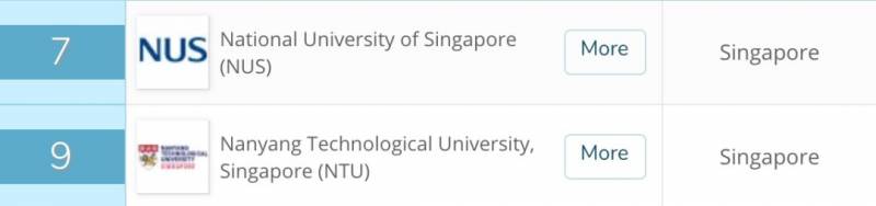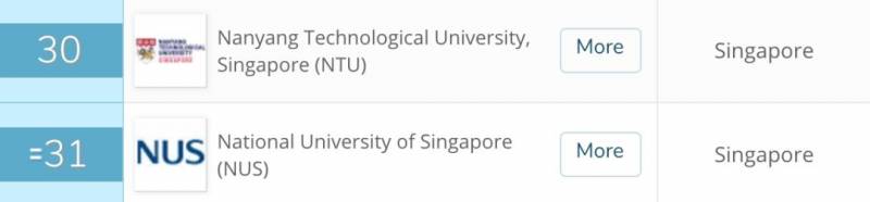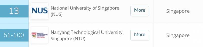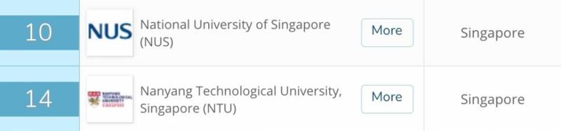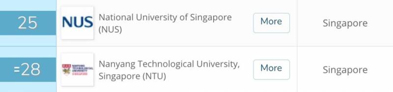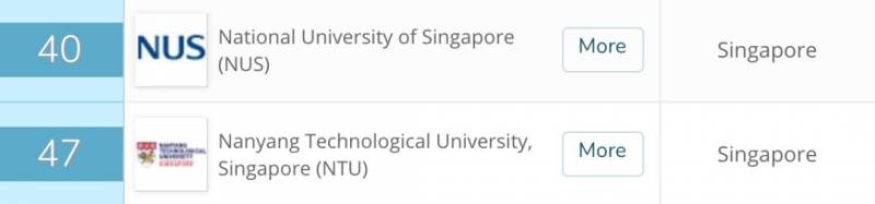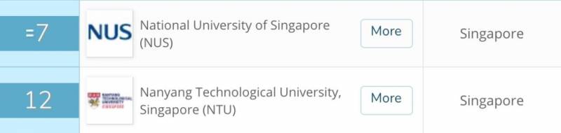 在艺术与设计领域,南洋理工大学 (NTU) 的排名高 NUS 一位。