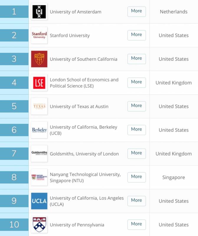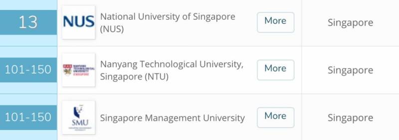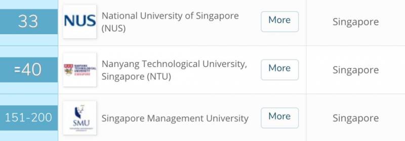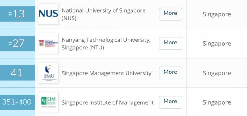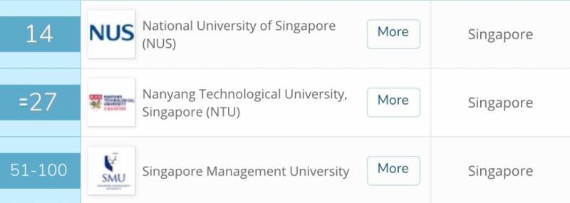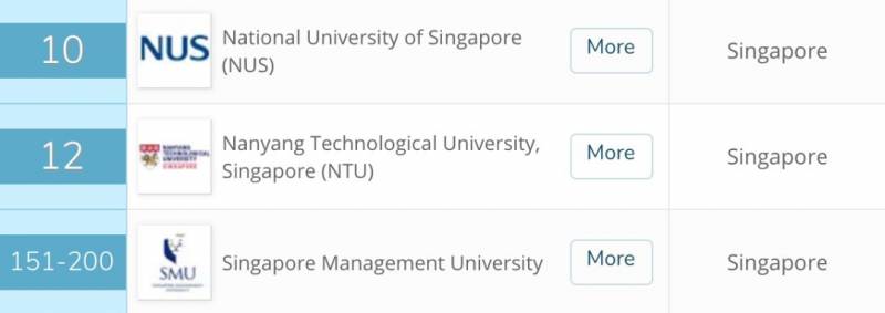 SMU是一所专注于商科、计算机、法律等细分领域的高校,所以在QS世界大学综合排名上,并没有获得像 NUS 和 NTU(综合类院校)那么高的位次。如果关注专业排名的话,SMU毫不逊色。